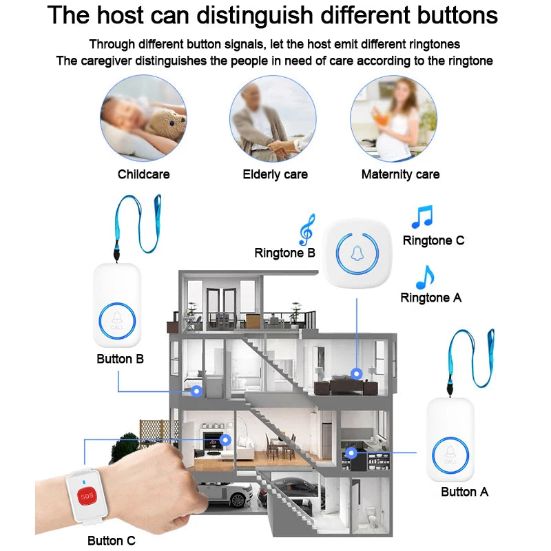 The Wireless SOS Call Button is a personal emergency alert device designed for kids, elderly individuals, and patients. With a simple press, it sends an alert to a connected receiver, notifying caregivers or family members when assistance is needed.